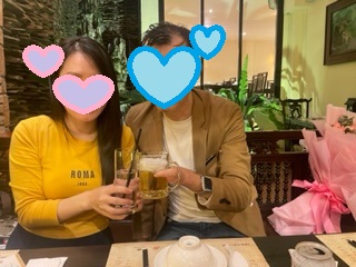 私たちは夕方プロポーズのためのレストランやお花の手配をし、ホテルで二人の帰りを待ち、少し休憩をし、彼は日本へ帰る支度もしてレストランへ。